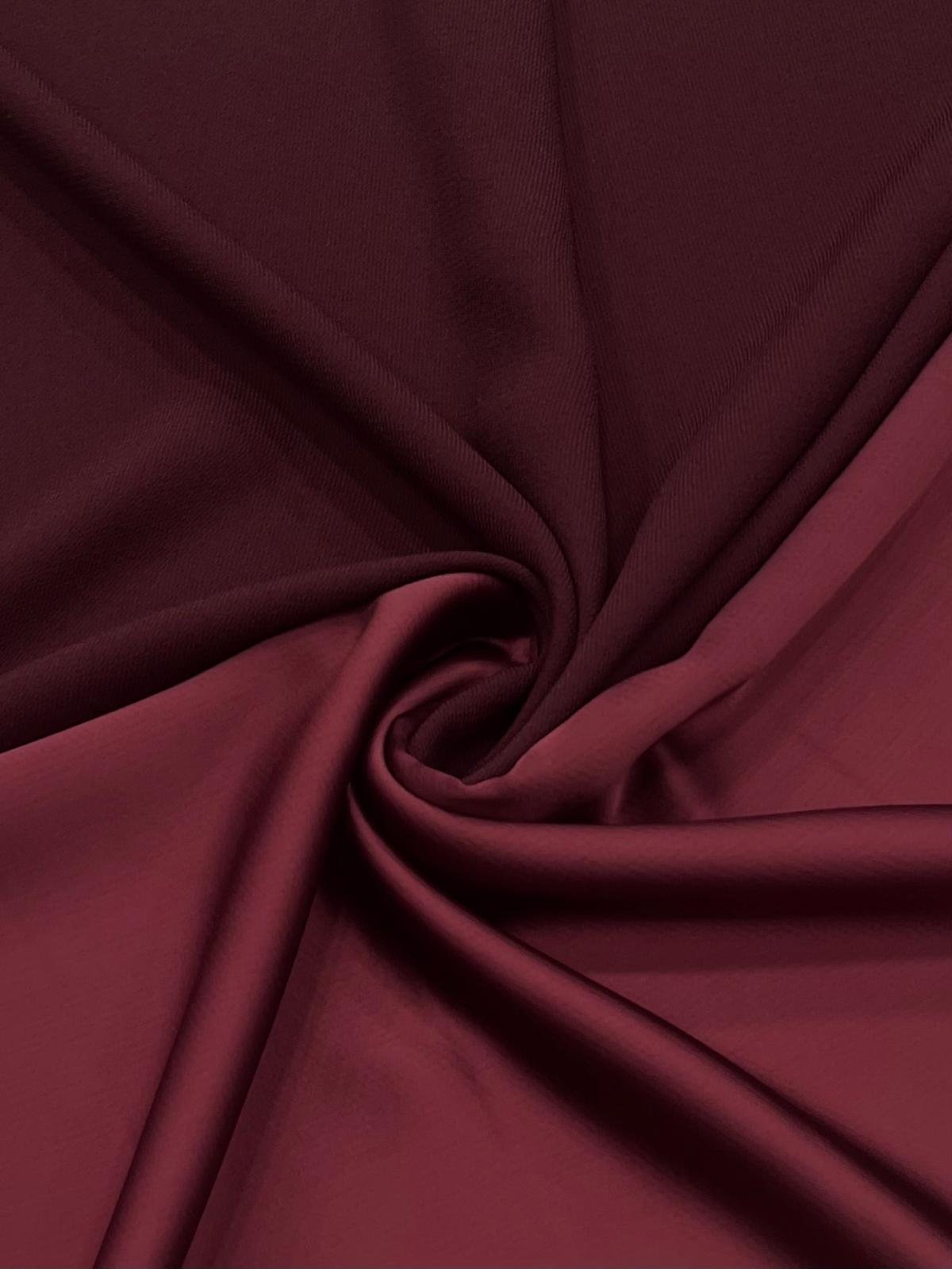 Crep satén en tono bourdeos, un tejido con caída, peso y cuerpo. Se puede trabajar por ambas caras, ideal para proyectos versátiles.