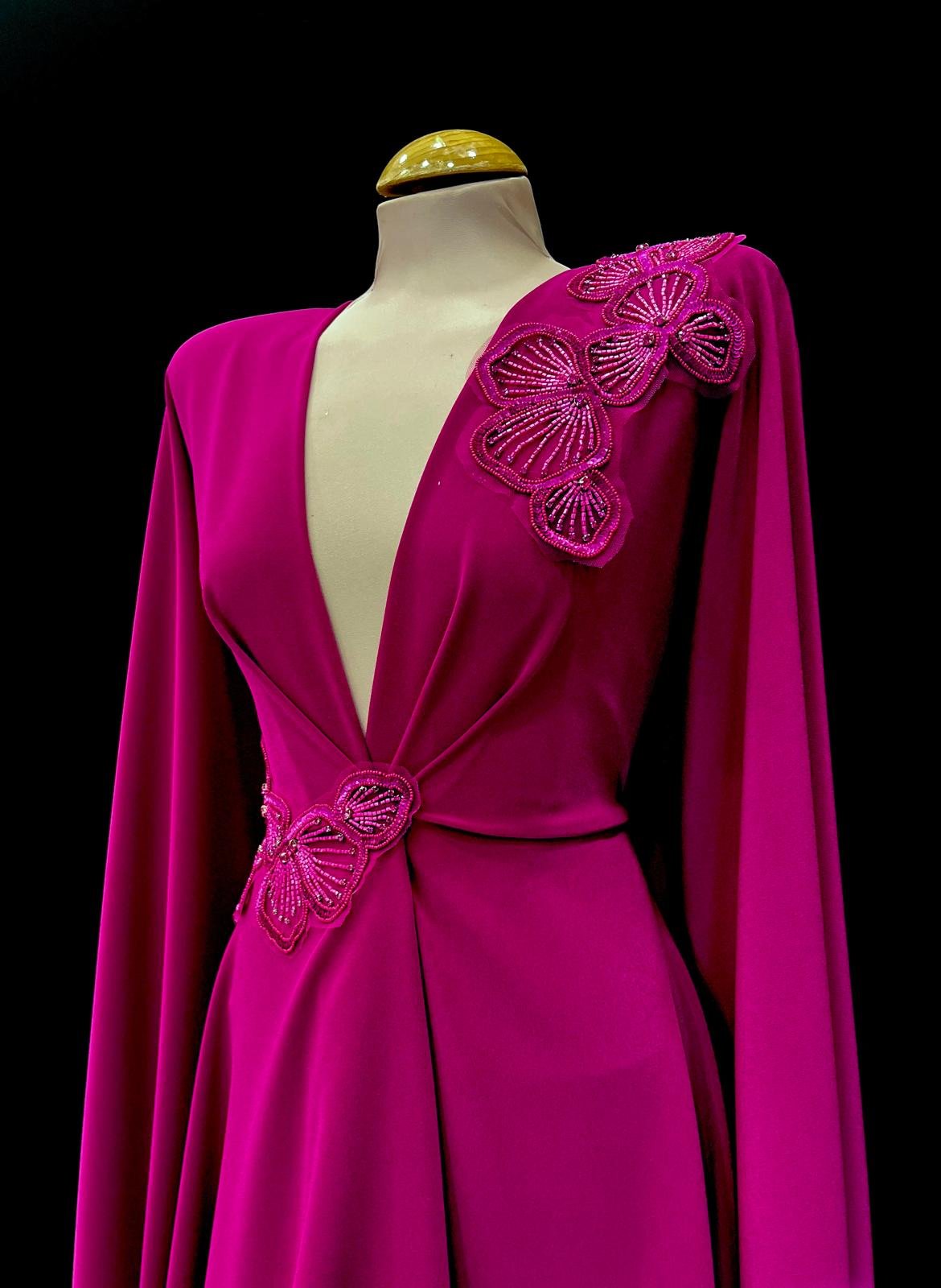 Crep satén en tono cardenal, tejido con caída, cuerpo y ligeramente elástico que ofrece una sensación de confort. Se puede trabajar por ambas caras.