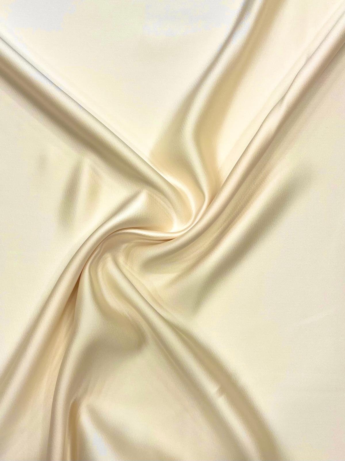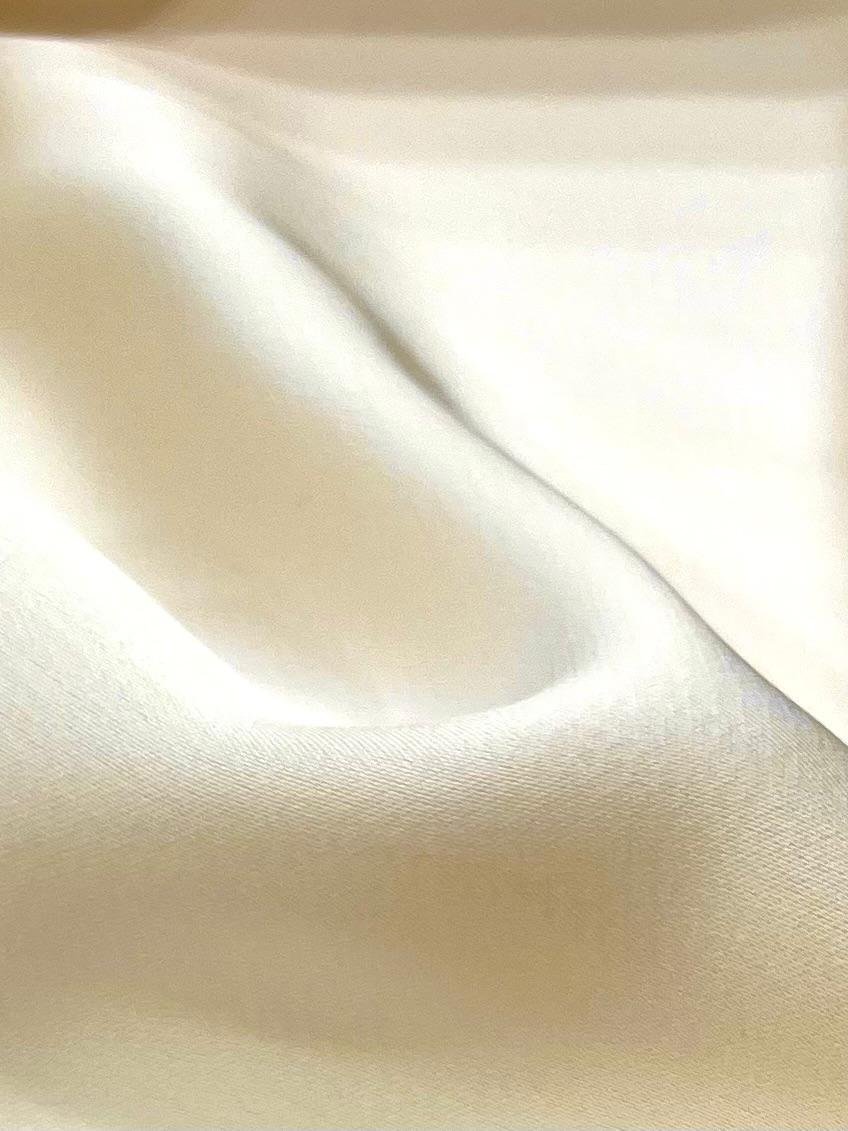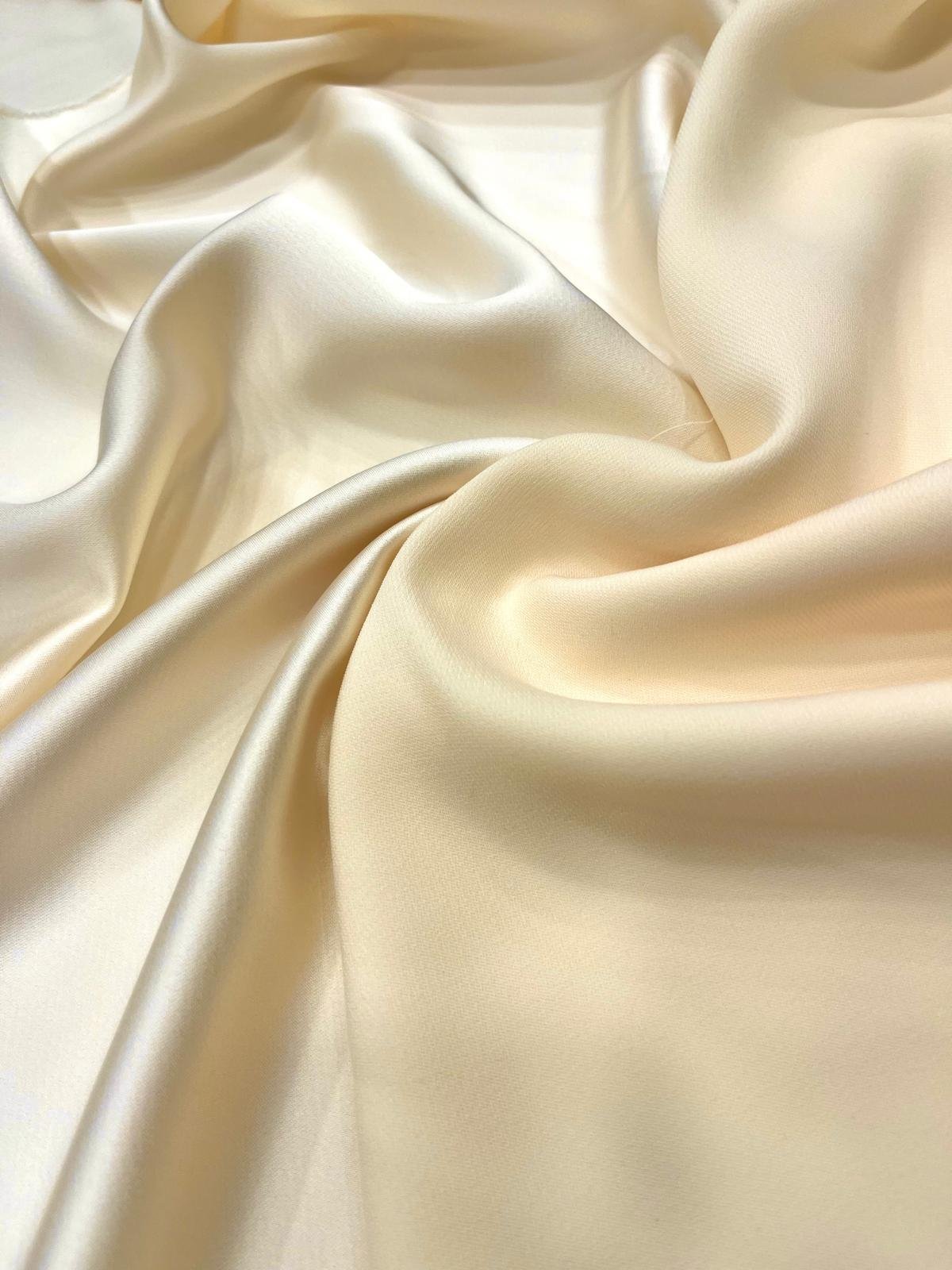 Crep satén en tono marfil. Crep con acabado satinado en tono marfil con caída y movimiento. Se puede trabajar por ambas caras.