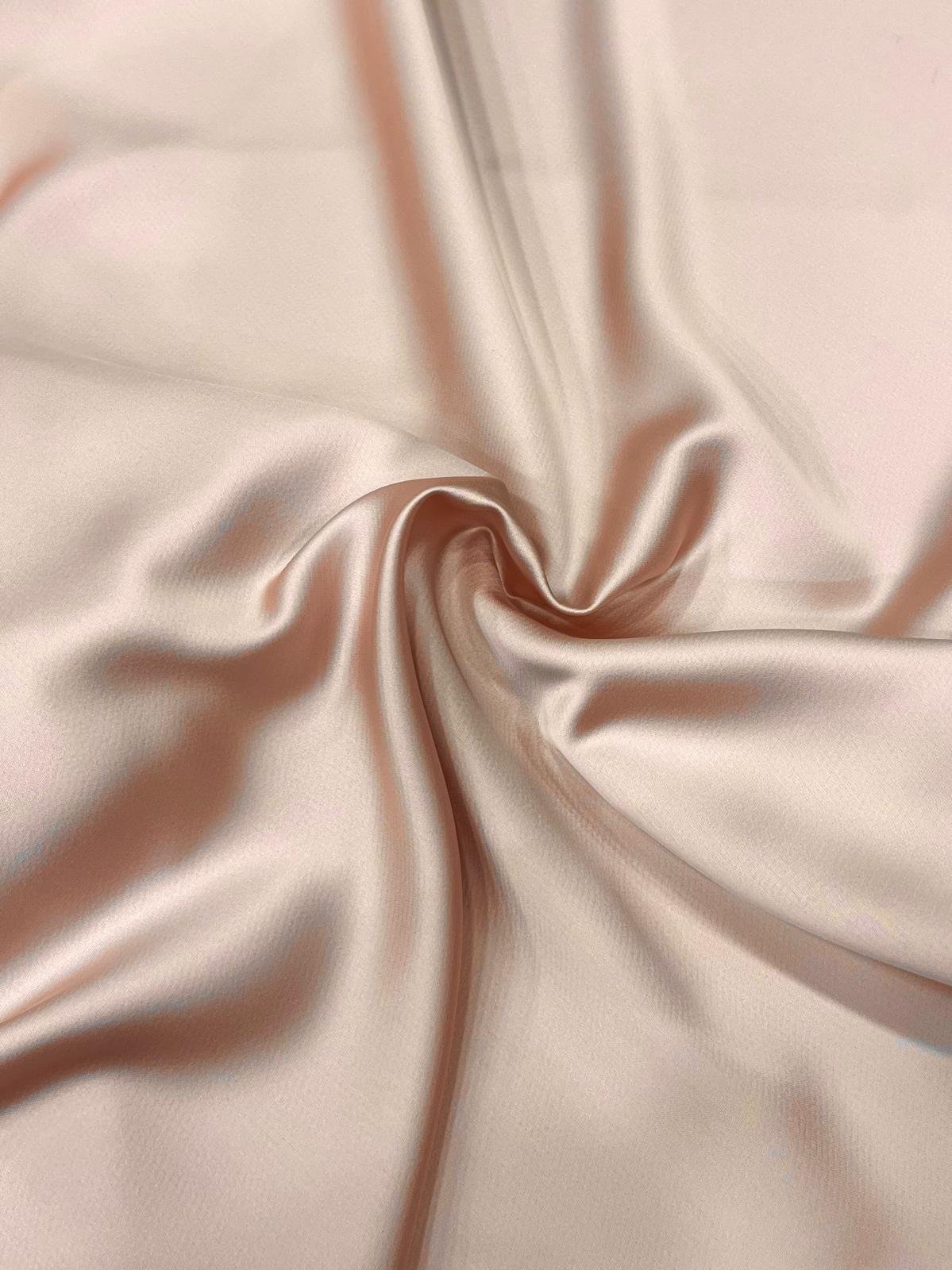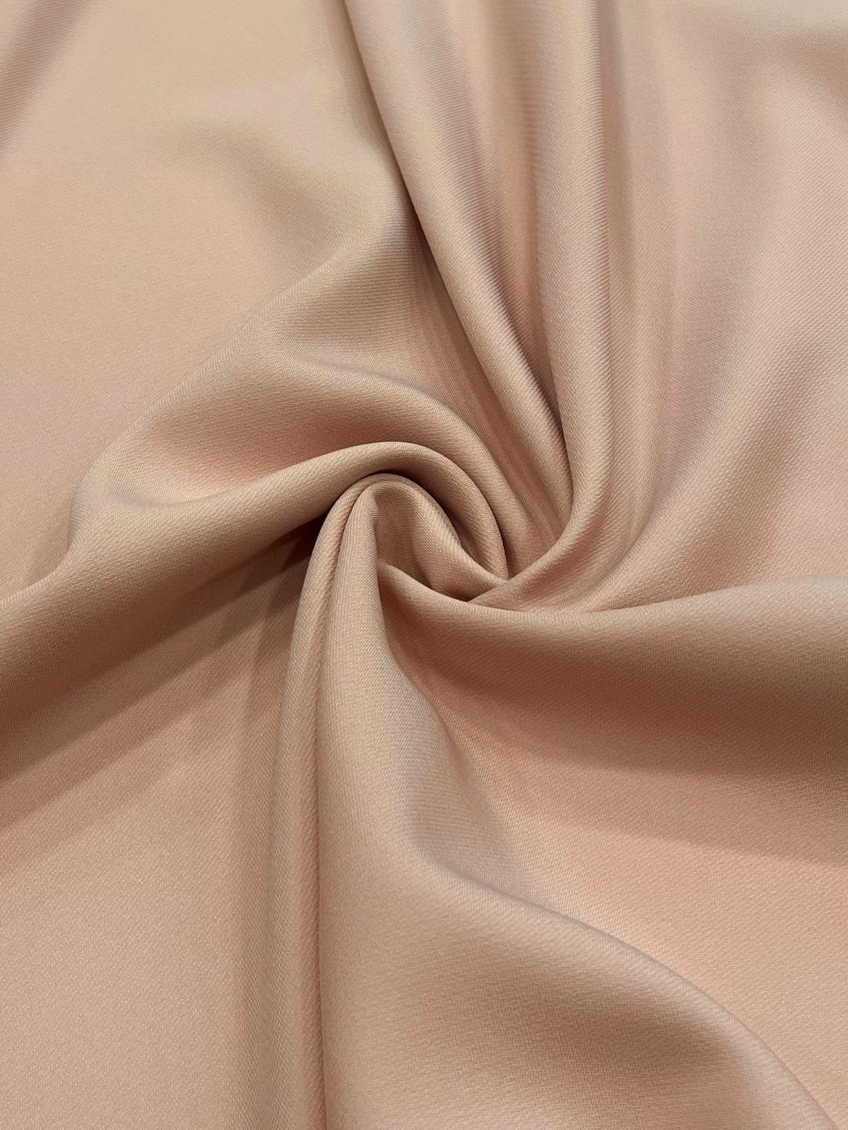 Crep satén en tono rosa nude, un tejido con caída aspecto sedoso. Se puede trabajar por ambas caras.