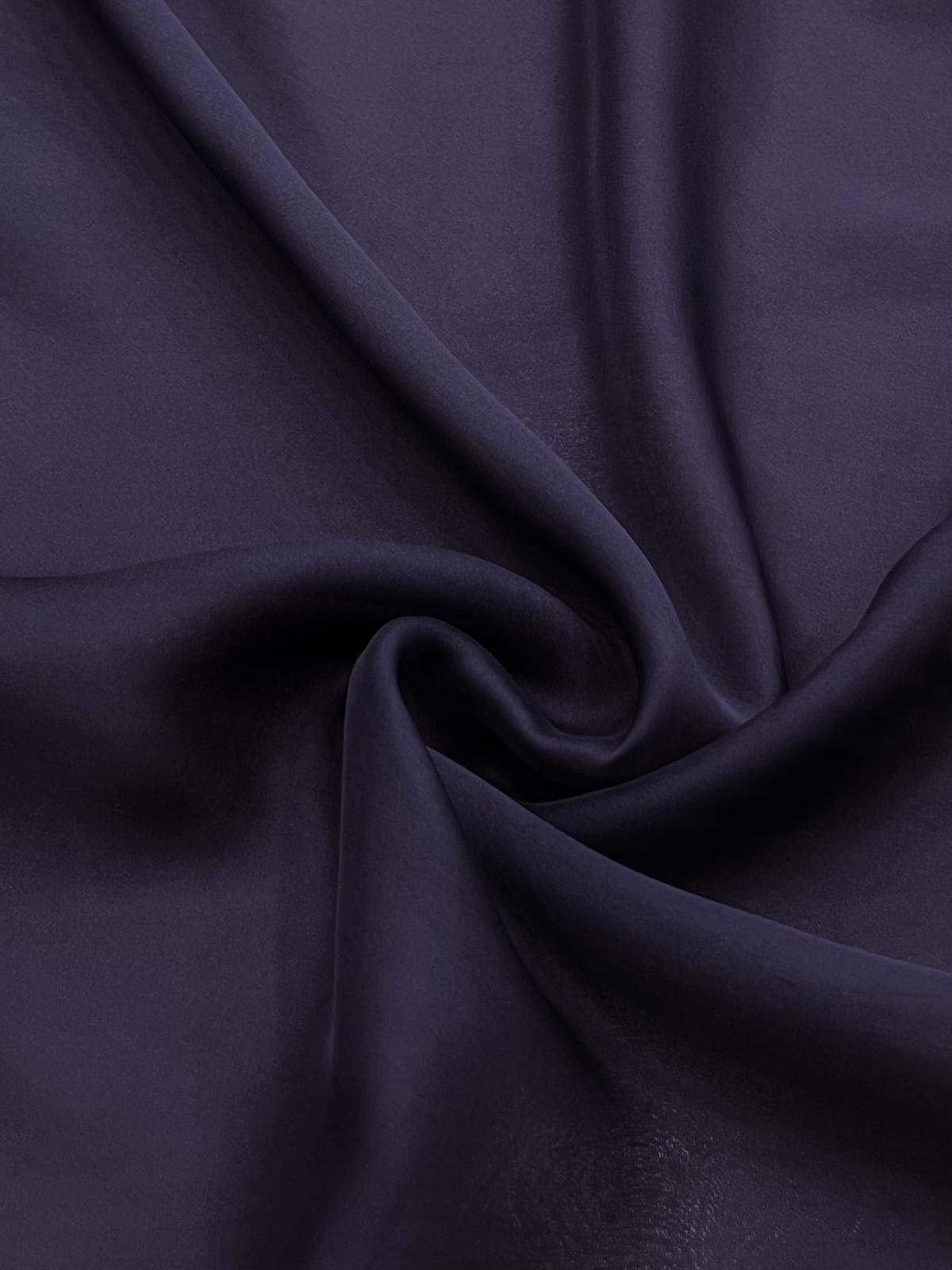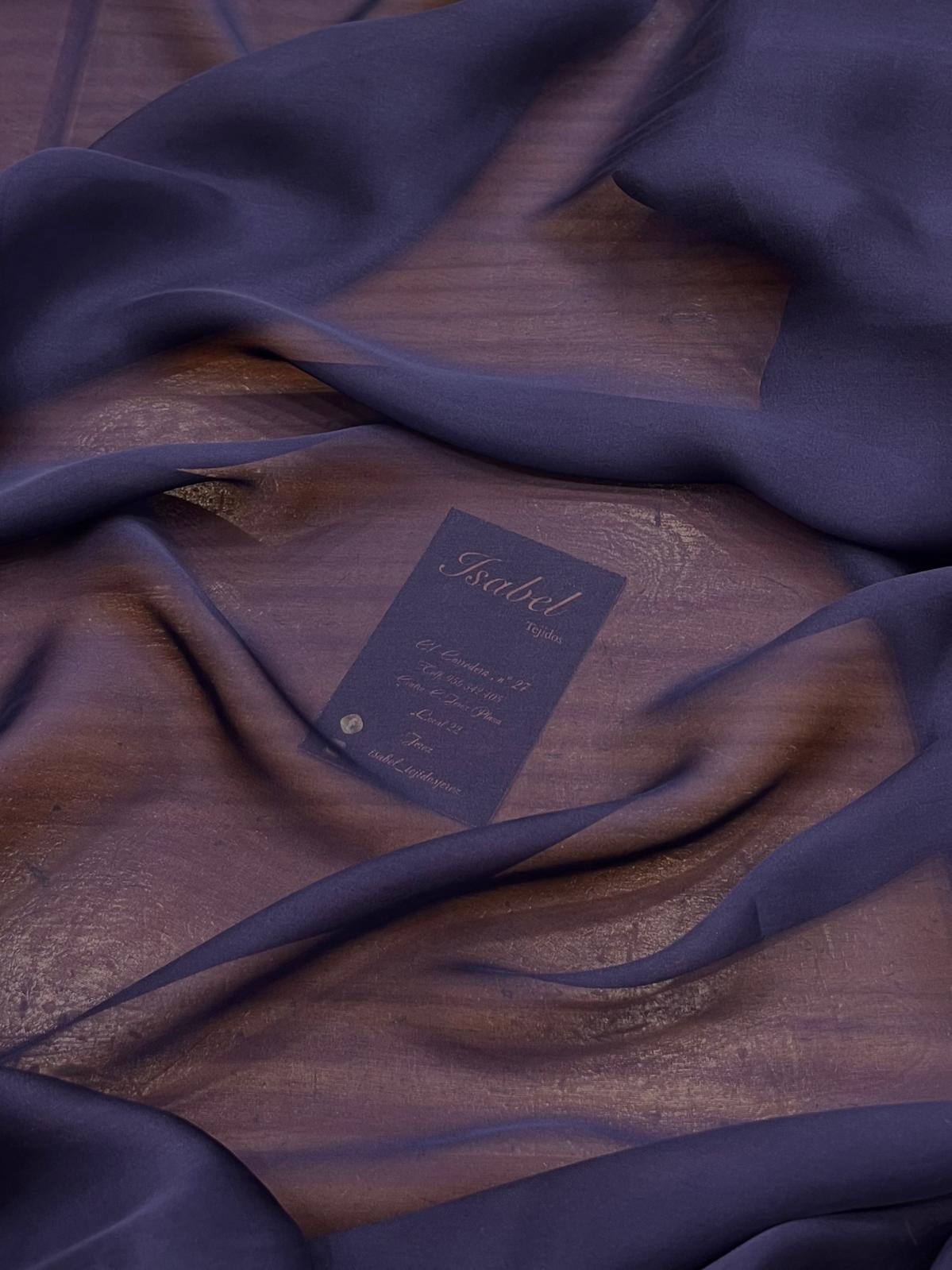 Gasa de seda natural satinada en tono azul medianoche. Tejido semitransparente con mucha caída y sedosidad.