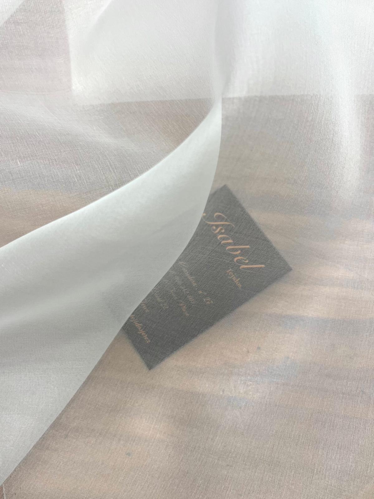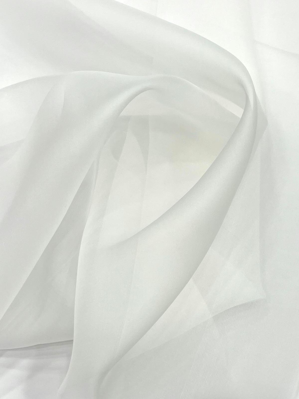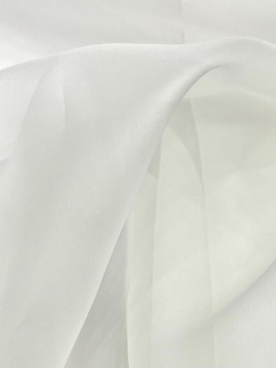 Organza de seda natural en tono blanco natural. Este tejido es semirrígido y semitransparente.