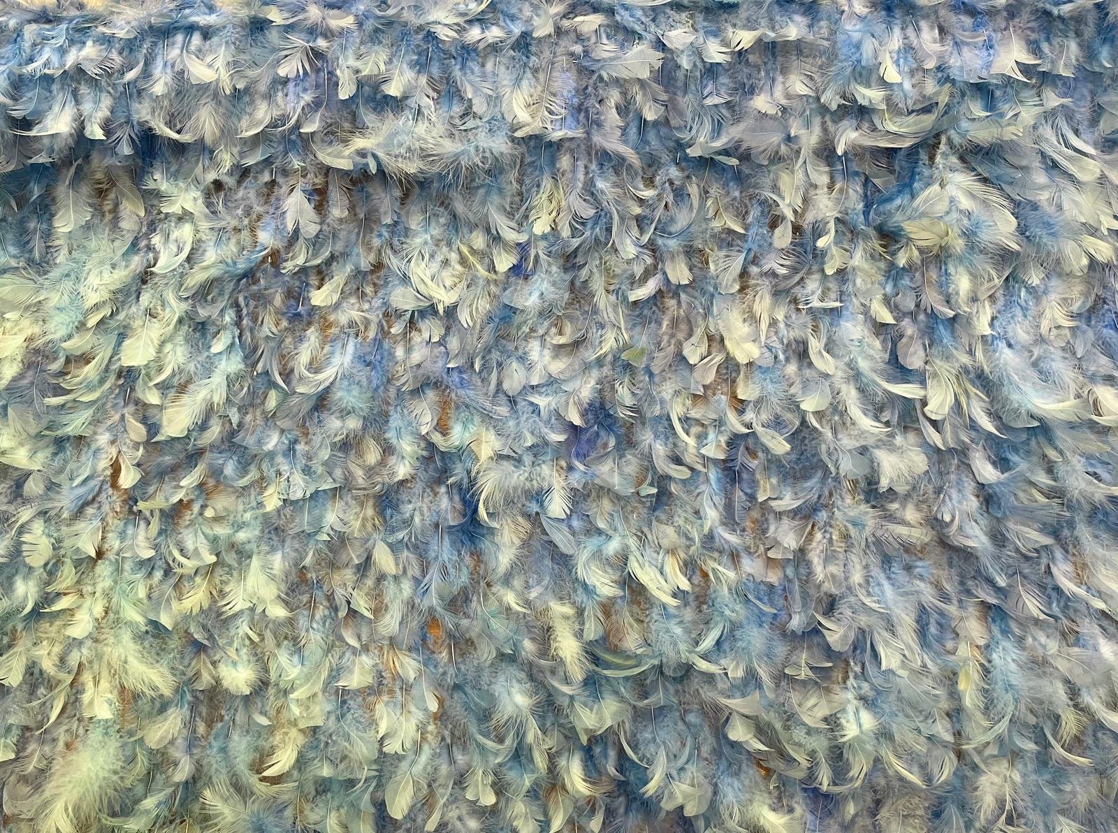Tejido completo de plumas en tono celeste.
