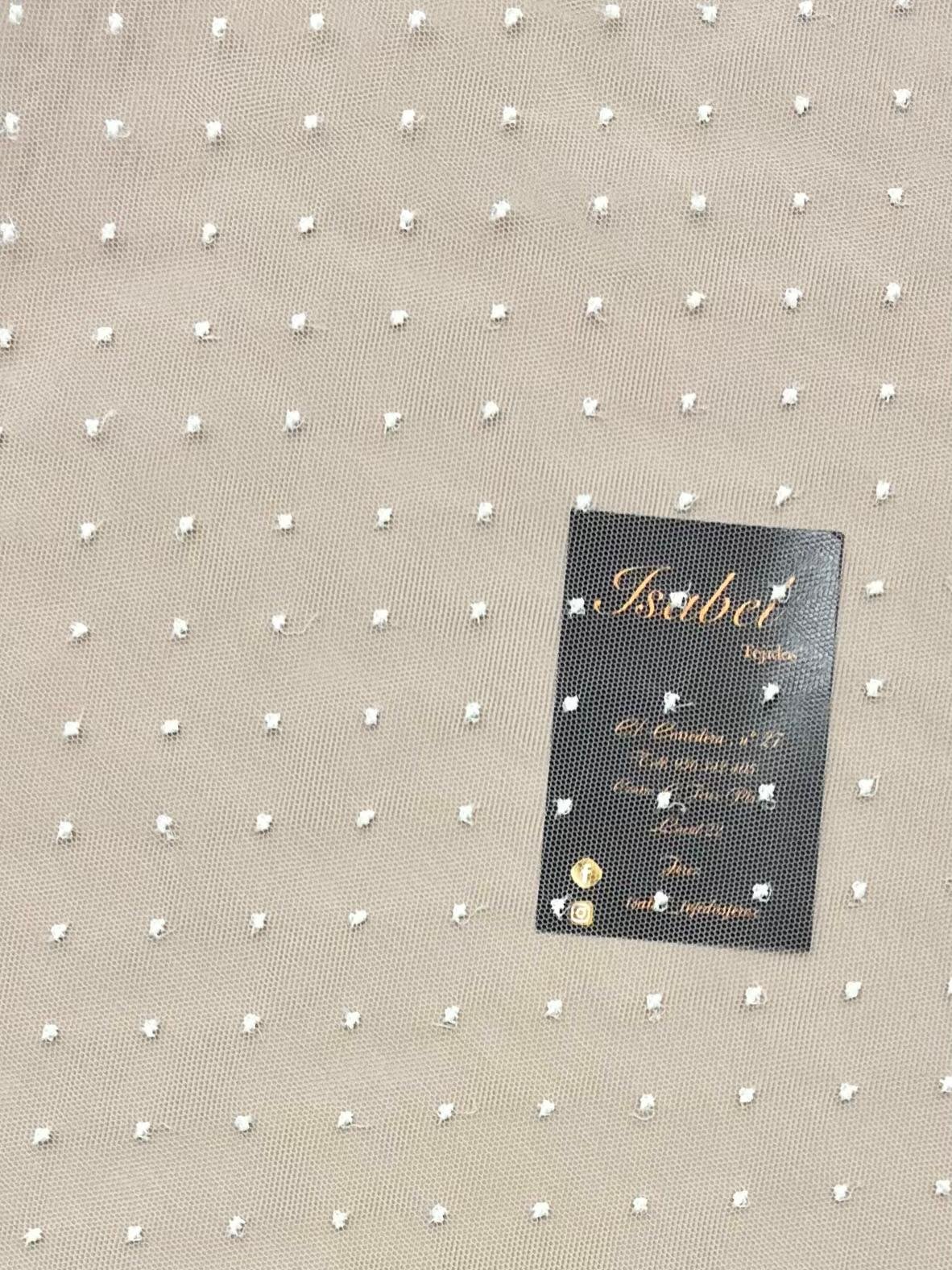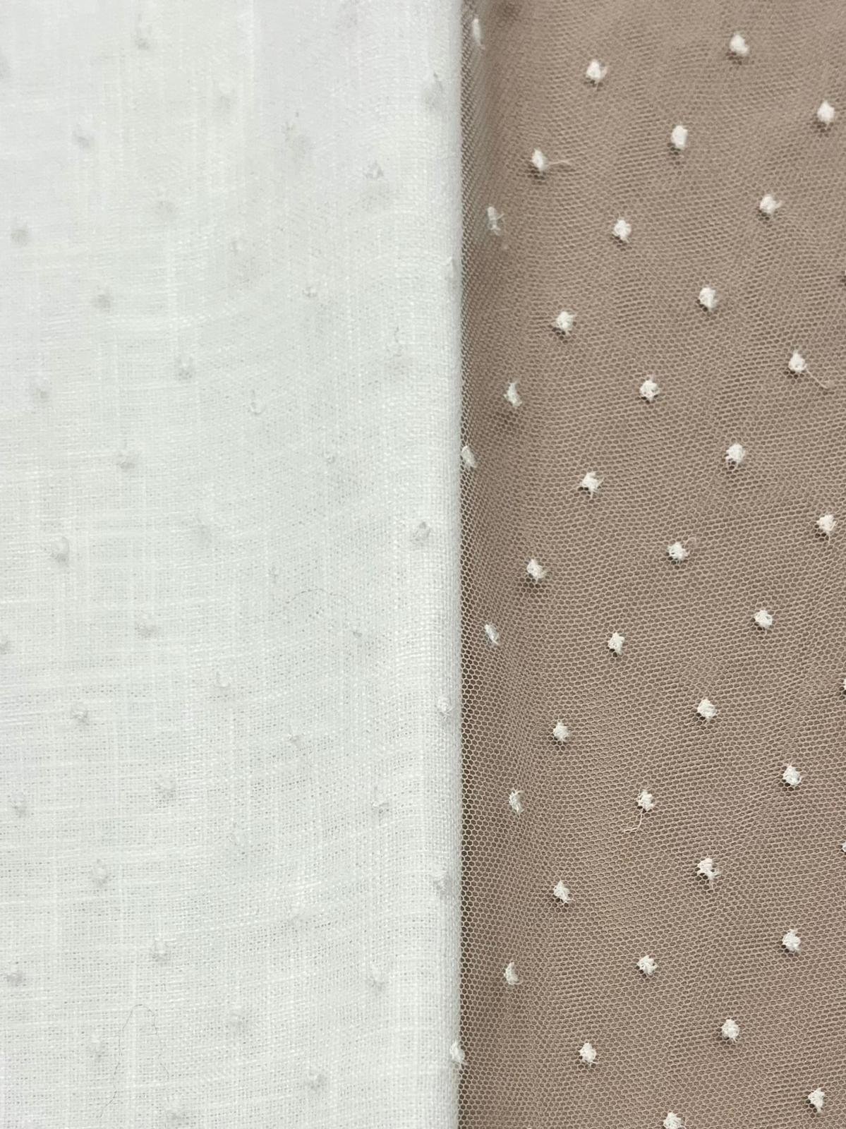 Tul de plumeti con mota bordada en tono blanco natural.