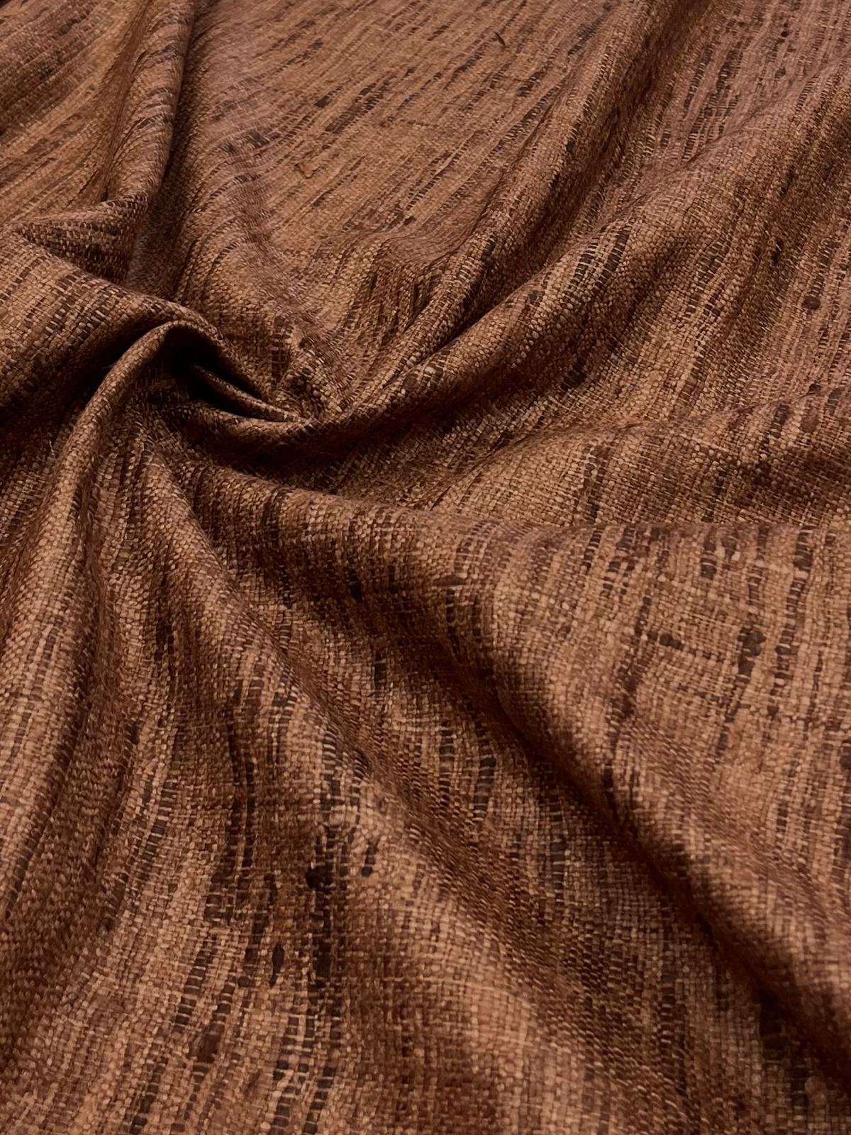 Hilo de seda rústico en tono marrón moka, 100% seda natural. Este tejido tiene cuerpo, ideal para trajes de chaqueta y vestidos.